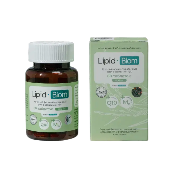 Lipid-Biom – профилактика развития атеросклероза Новая разработка AlfaBiom: красный ферментированный рис с коэнзимом Q10 Доказанные свойства красного ферментированного риса: Монаколин К, входящий в состав красного ферментированного риса, способствует снижению выработки мевалоновой кислоты, провоцирующей во многих случаях развитие и прогрессирование злокачественных новообразований. Оказывает положительное влияние на липидный обмен Дополнительные свойства: *противоопухолевый *нейропротекторный *гепатопротекторный *снижение риска остеопороза *антидиабетический (лечение ожирения) *положительный эффект при синдроме хронической усталости *противовоспалительный.